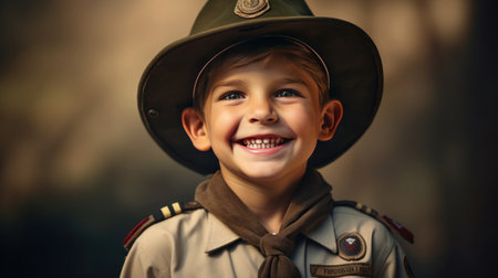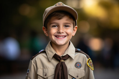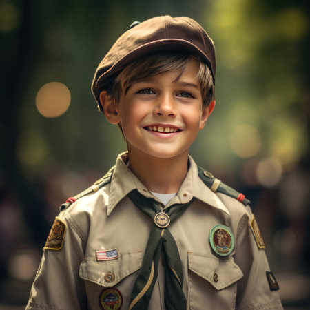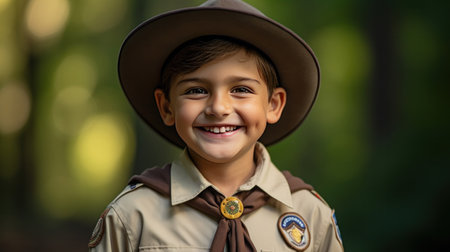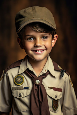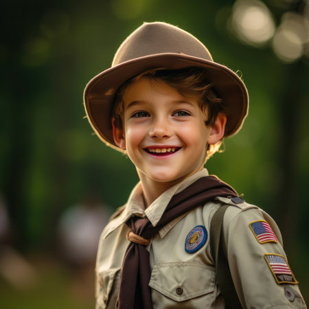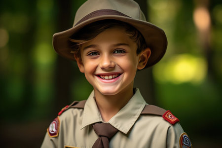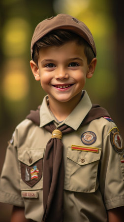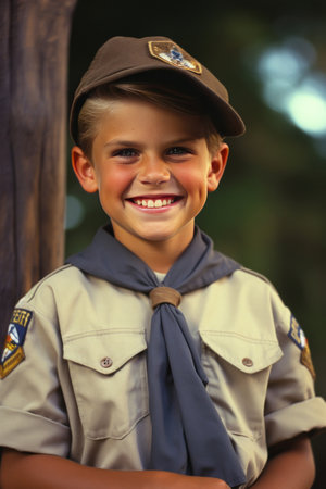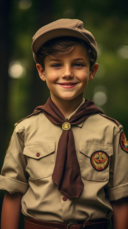 Close up Handsome White Male Scout in Uniform Looking at Camera.