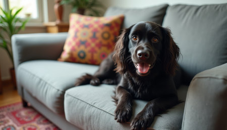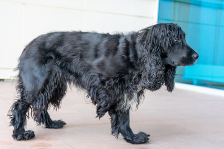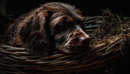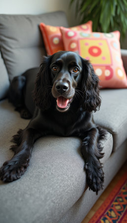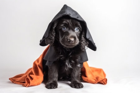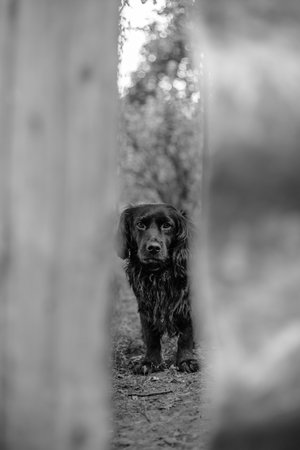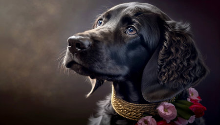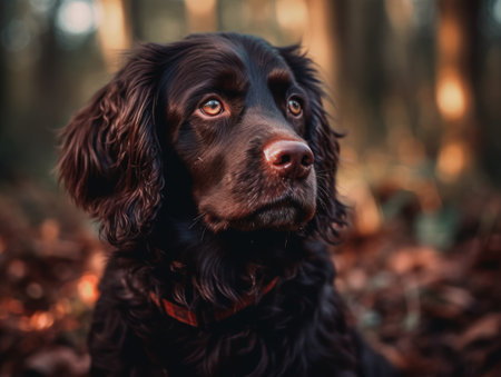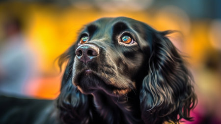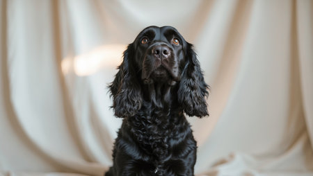 AI Generated. Black Cocker Spaniel Dog Sitting and Looking Up