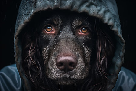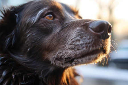 Focus on black beautiful nose Closeup portrait of beautiful black spaniel dog The big dog wants to find family and leave the dog shelter waiting for the hosts : Generative AI