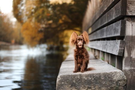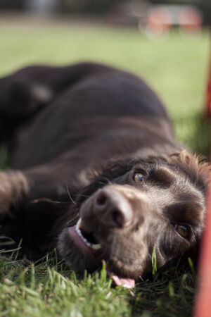 very cute young small chocolate liver working type cocker spaniel