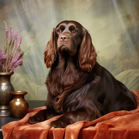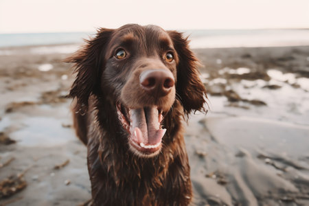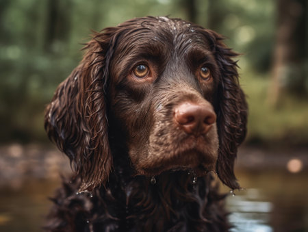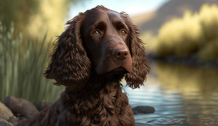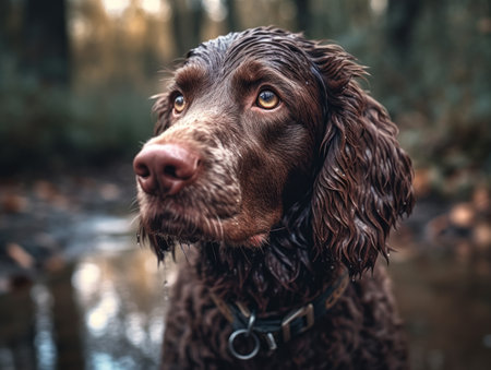 American Water Spaniel dog close up created with Generative AI technology