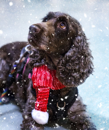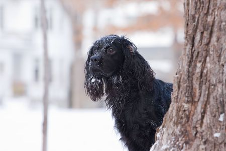 Cocker spaniel early morning winter walk, UK