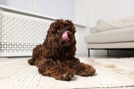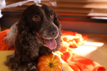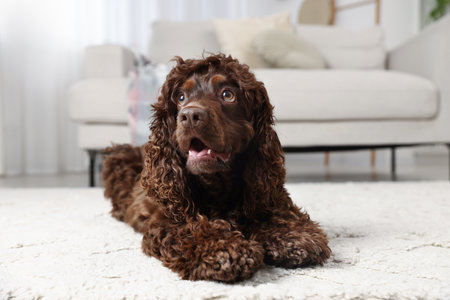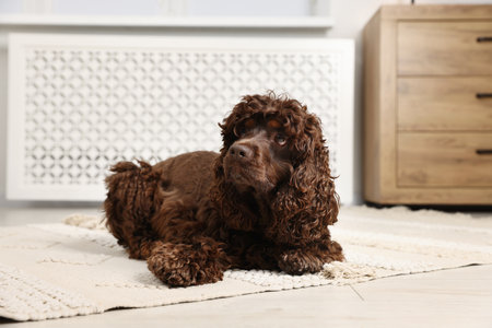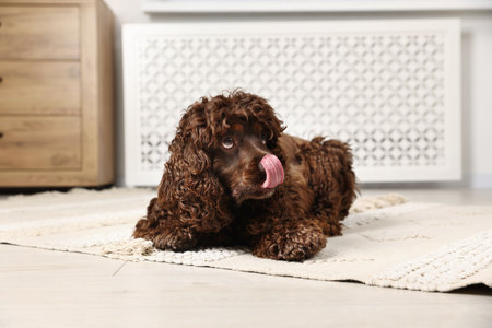 Cute Cocker Spaniel dog on floor at home