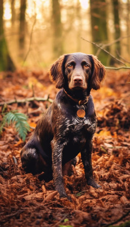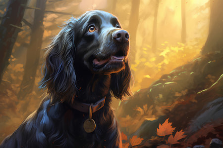 Digital painting of a cocker spaniel in the autumn forest.