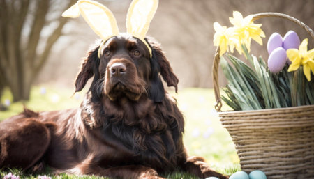 Vertical shot of beautiful cute dog with flowers
