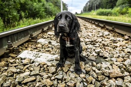 Beautiful black young cocker spaniel in the nature near rocks, Dobrogea, Romania
