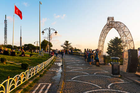 Istanbul, Turkey - April 23, 2016: Local people and tourists are walking and taking photos on the top of the Camlica hill in Istanbul, Turkey