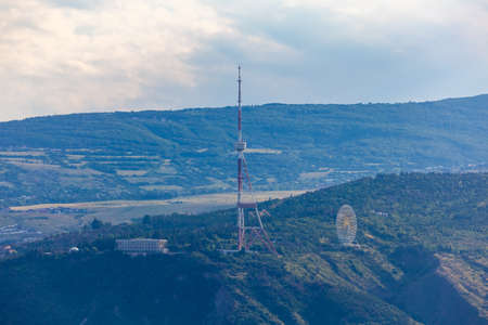 Beautiful view of Tbilisi at sunset, capital of Georgia. Citiyscape