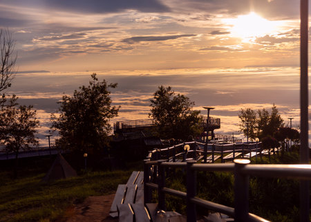 stationary observation binoculars at sunrise on a sunny winter day in Antalya Turkey