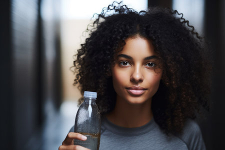 shot of a young woman holding a bottle of water and looking at the camera, created with generative ai