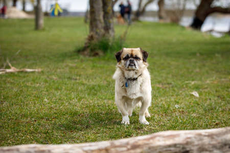 Charming Pug-Chihuahua Mix Dog with Big Eyes, Short Snout, and Playful Personality in a Park