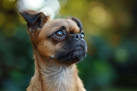 Close-up of a contemplative brussels griffon dog with a bokeh background