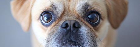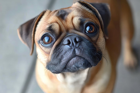 Charming Pug Portrait with Expressive Eyes and Adorable Features Against a Clean Gray Background
