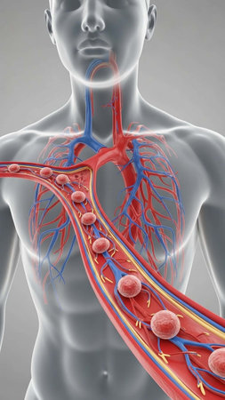 A striking representation of the human blood vessel network glows vividly in a state of the art medical facility, capturing the complexity of circulation and anatomy in vibrant detail.