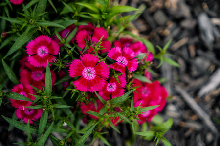 Mini carnation Pink Kisses, Dianthus Pink Kisses flowers blooming in the garden.