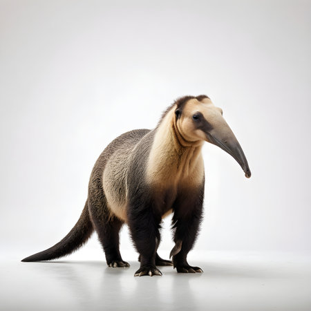 Giant anteater isolated on a white studio background, side view.
