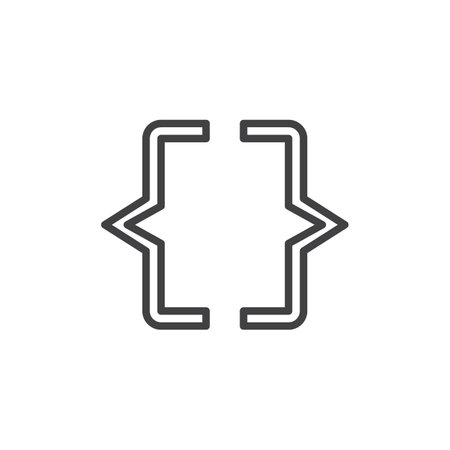 Code brackets line icon resembling programming syntax. Outline vector icon symbolizing development, coding, and software. Tech icon for interface use.
