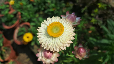 helichrysum bracteatum flower white yellow outdoor garden