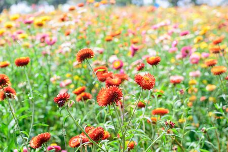 Colorful flower in the garden, Thailand. (Helichrysum bracteatum)