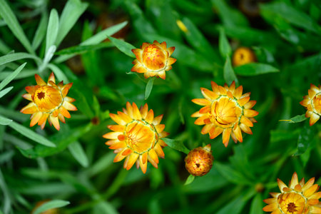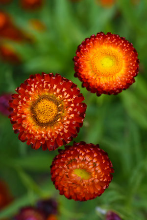 Helichrysum or Straw flower in outdoor garden.