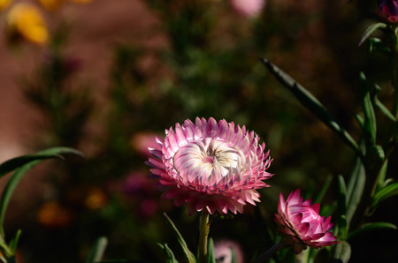 Beautiful straw flower or everlasting in outdoor garden.