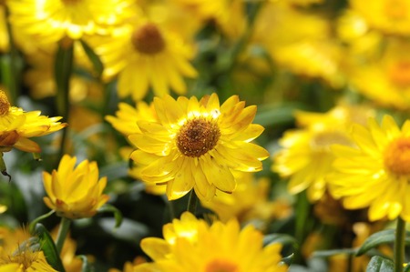 Helichrysum bracteatum or Everlasting flower in garden