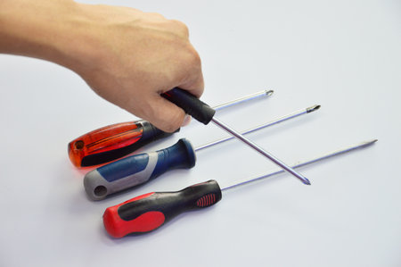 Screwdrivers to repair lying on the table. Mens housework. Fix