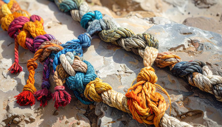 diverse ropes connected together as a symbol for cooperation and working collaboration. ai generated