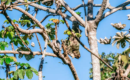 Sloth Animal hanging on Tree. Sloths are a group of arboreal Neotropical xenarthran mammals, constituting the suborder Folivora. Noted for their slowness of movement.