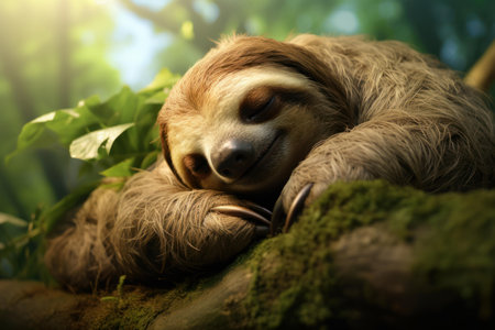 Serenic Sleeping sloth on branch. Wildlife animal forest tropical mammal. Generate Ai