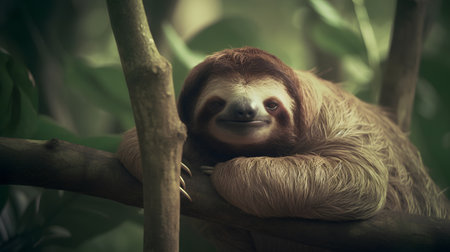 A sloth nestled in vibrant green leaves showcasing the beauty of wildlife in its natural habitat Experience the tranquility of nature through this stunning jungle scene