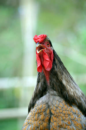 this is a closeup of a rooster is crowing