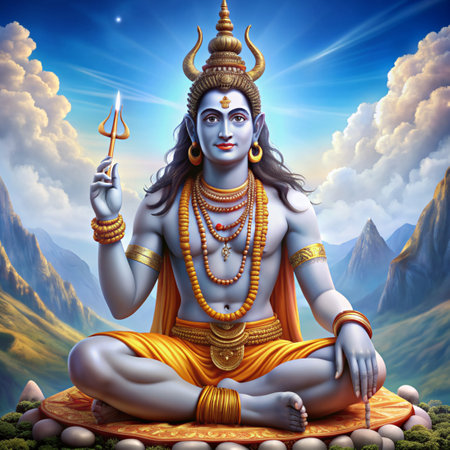 Lord Ganesha in the lotus position with beautiful sky background