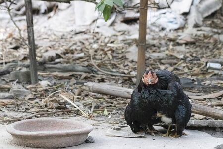 rooster and chicken on a rural farm