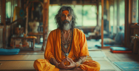 yoga master in lotus position, realistic illustration