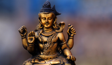 Close-up view of Indian Hindu God Shiva idol in meditating and blessing pose
