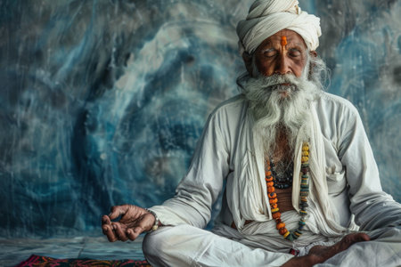 An Elderly Indian Man Meditates, A Yogi in the Lotus Position, Generative AI Illustration