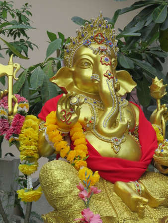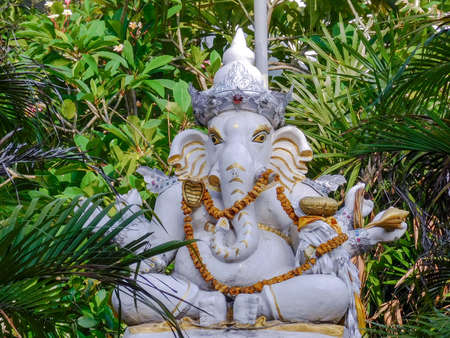 The nicely crafted statue of ganesh, a poular Hindu deity, in the garden of a Buddhist temple in Chiang Mai.