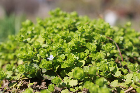 Chickweed, Stellaria media in the garden. The plants are annual and with weak slender stems, they reach a length up to 40 cm. High resolution photo. Full depth of field.