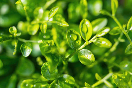Close-up,Beautiful fresh green leaf with drop of water nature background.