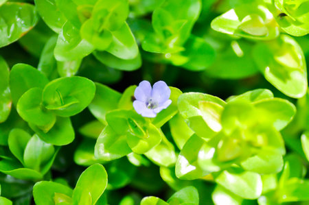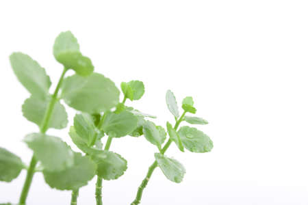 Close up Brammi leaf and flower with soft shadow on white background, Is a herb that helps in the treatment of dementia. (Scientific name Bacopa monnieri)