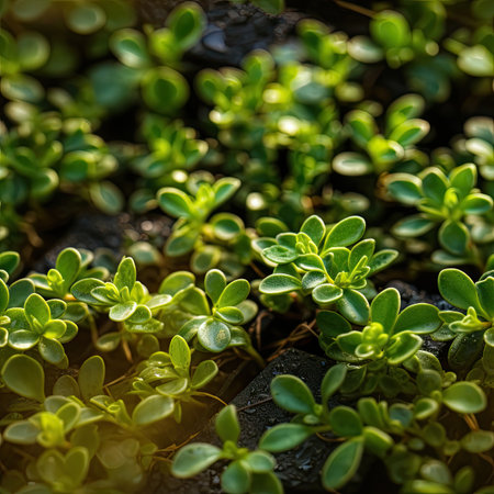 Vibrant Purslane plant with blooming yellow flowers in a garden under bright sunlight