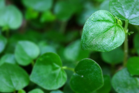Close-up of dense green foliage with small white blooming flowers, creating a vibrant natural texture. Ideal for backgrounds, botanical themes, and eco-friendly landscape designs.