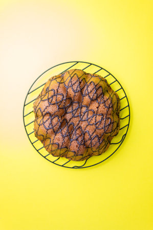 Vertical shot of Delicious tasty Bundt cake with white glaze 3d illustrated