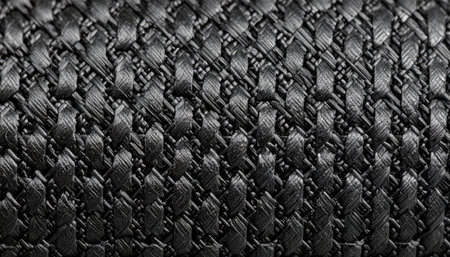 A close-up image revealing the intricate patterns of a black woven texture. Ideal for artistic projects, design inspiration, or showcasing modern fabric styles.