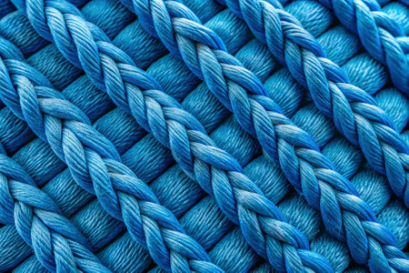 A detailed macro shot reveals the intricate weave of a heavy-duty blue rope. Each fiber is tightly interwoven with the next, creating a powerful symbol of strength, unity, and collaboration.
