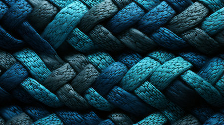Detailed close-up of a blue woven pattern intricate texture and craftsmanship. ideal for textile design inspiration, showcasing the artistry in weaving details, perfect for catalog, print, and digital media use. Generative AI