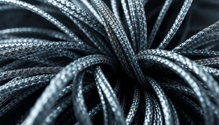 This image features a close-up view of intricately woven black and brown cords, highlighting the detailed textures and patterns against a sleek dark background.