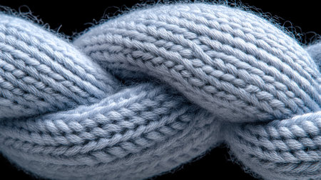 This image showcases a close-up of a beautifully knitted blue fabric with intricate interwoven patterns. Ideal for textile enthusiasts and designers.