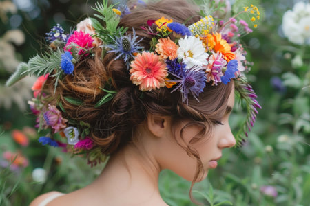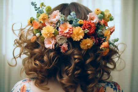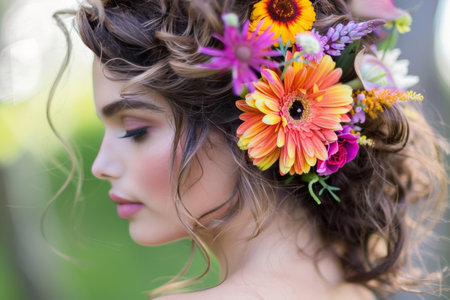 Blooming Elegance: Adorning Womens Hair with Flowers in a Mesmerizing 3:2 Artistic Display